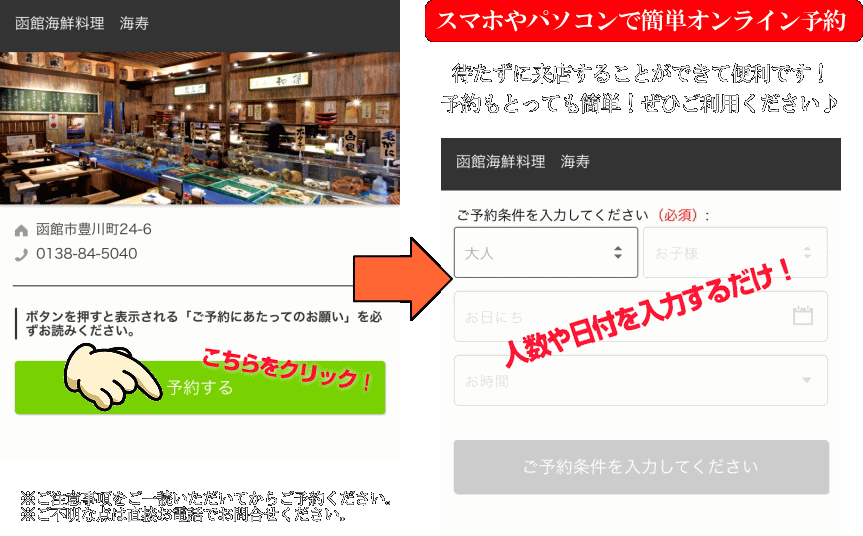 ※ご予約の変更またはキャンセルについては、上記番号までお電話ください。